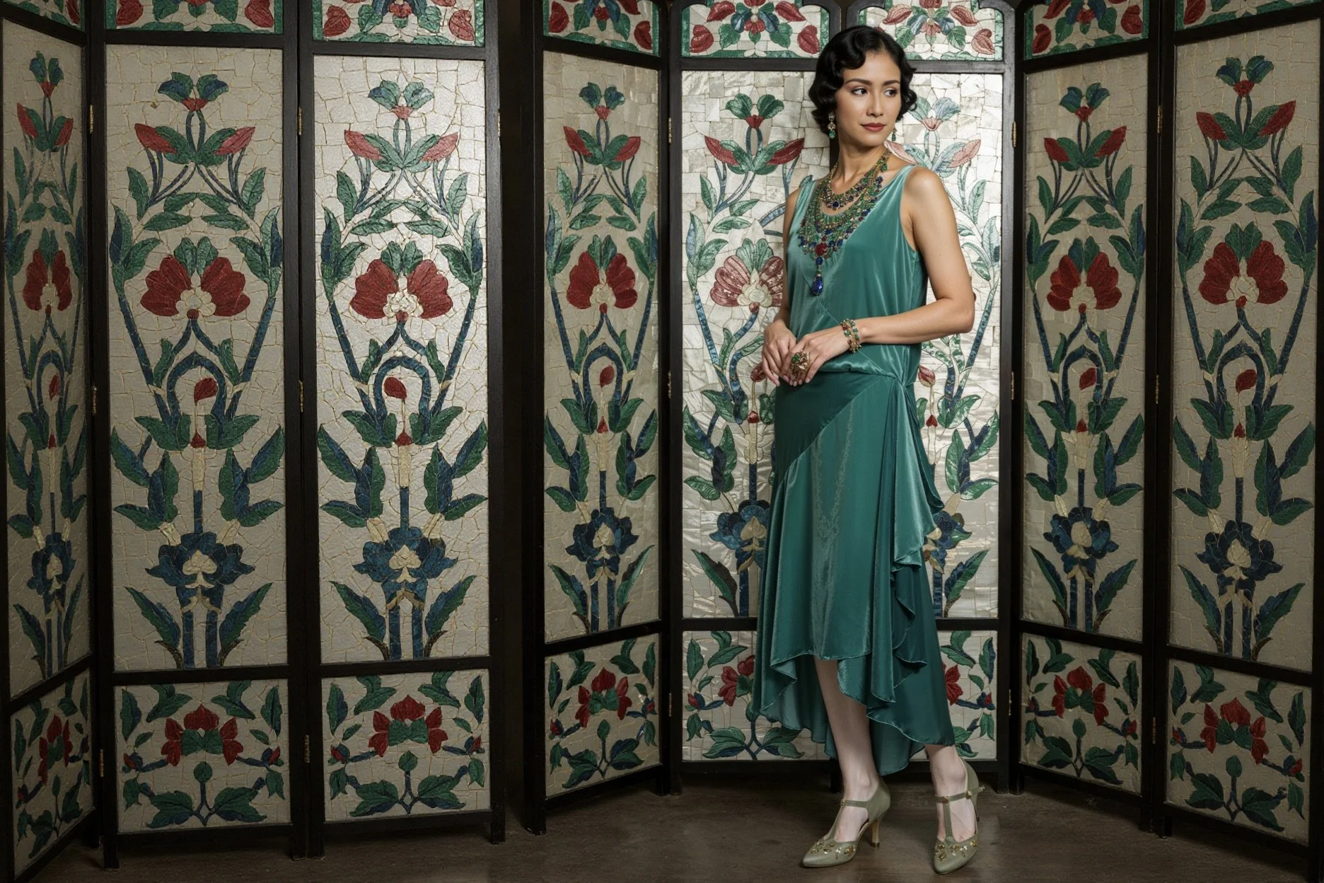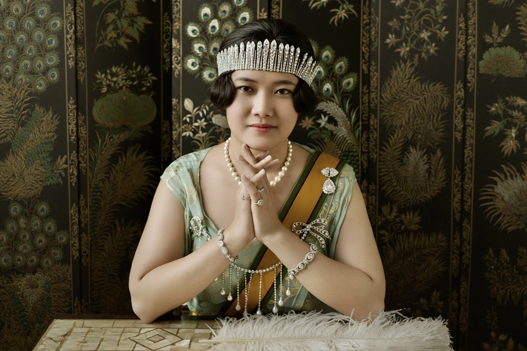 ภาพที่สร้างสรรค์ด้วยเทคโนโลยี AI คอลเล็คชั่นนี้ เป็นแฟชั่นสมัย Art Deco ช่วงทศวรรษที่ 1920 หรือสมัย ปลายรัชกาลที่ ๖ ถึงต้นรัชกาลที่๗ พร้อมกับเครื่องประดับสไตล์ Tutti Frutti แห่งแบรนด์อัญมณีชั้นสูง Cartier