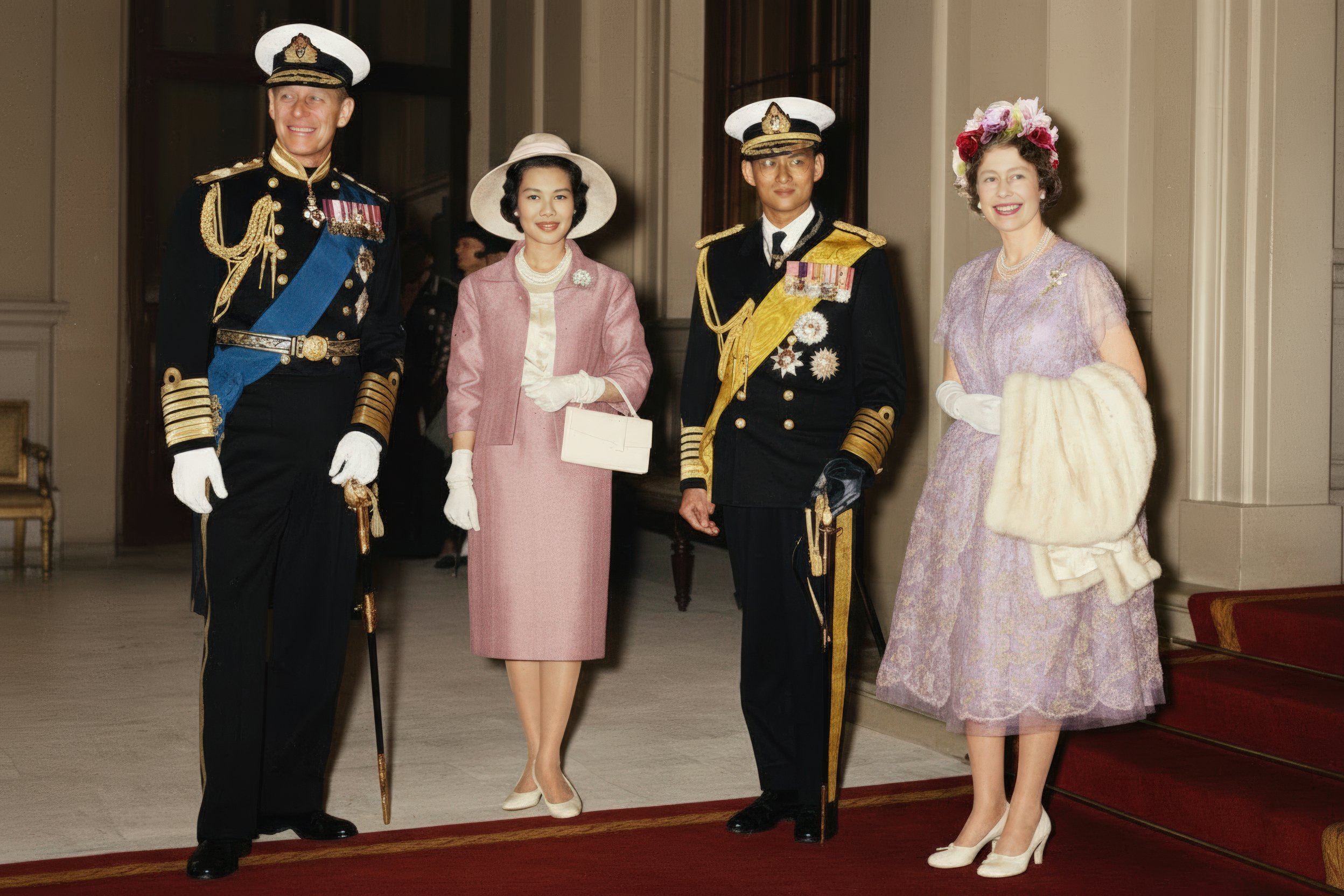 คอลเลกชัน AI ชุดนี้ได้รับการ บูรณะและสร้างสรรค์ด้วยเทคโนโลยี AI จากพระบรมฉายาลักษณ์ขาวดำต้นฉบับ ในการเสด็จพระราชดำเนินโดยรถม้าพระที่นั่งไปยังพระราชวังบักกิงแฮม เมื่อวันที่ 19 กรกฎาคม พ.ศ. 2503 (ค.ศ. 1960)