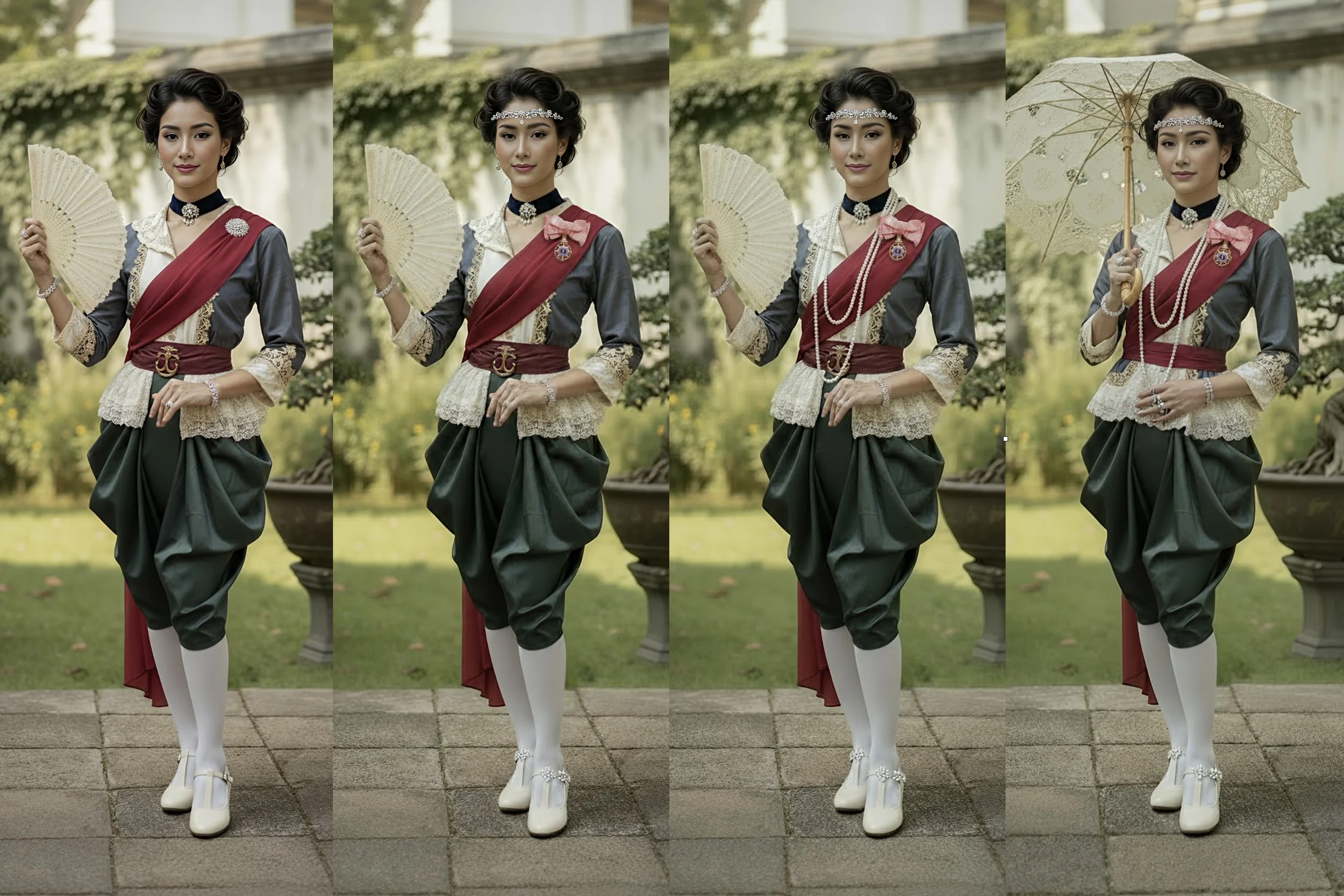 AI fashion design, in this context, is not merely about generating images; it is about reviving the beauty of the past through historical imagination and technological artistry, allowing the elegance of early 20th-century Siam to live again in the digital age.