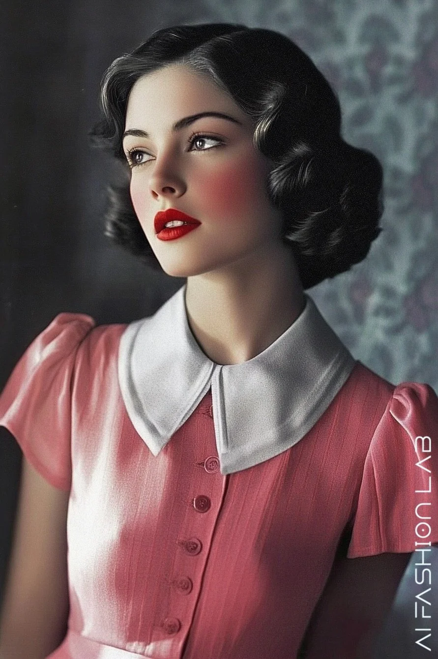In the 1930s, collars transcended mere functionality; they symbolised style, refinement, and social sensibility. From structured high necklines to gentle Peter Pan collars, these styles shaped the silhouette of 1930s women’s fashion, allowing women to express grace and poise. The evolution and variety of collars during this era reflect a blend of elegance, modesty, and an emerging sense of individuality in women’s fashion.