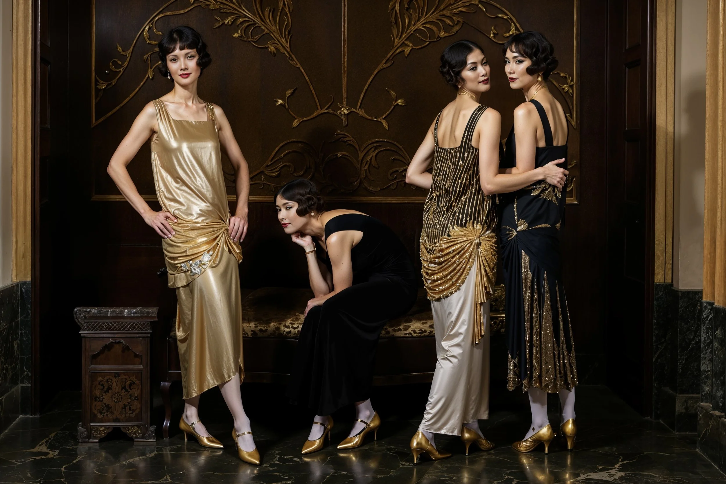 AI Collection ชุดนี้เป็นผลลัพธ์จากการค้นคว้าทางประวัติศาสตร์แฟชั่นอย่างเป็นระบบ โดยเริ่มจากการวิเคราะห์ภาพถ่ายขาวดำของสตรีในยุค 1920s ซึ่งสะท้อนอิทธิพลของแฟชั่นตะวันตกอย่างเด่นชัด ผมได้นำภาพต้นฉบับเหล่านี้มาลงสีและปรับคุณภาพเพื่อคงลักษณะเฉพาะของหญิงไทย เช่น ผมสีเข้มและโครงหน้าเอเชีย จากนั้นจึงนำภาพที่ลงสีแล้วมาใช้เป็นฐานข้อมูลสำหรับฝึกโมเดล AI Flux LoRA เฉพาะทาง เพื่อให้ AI สามารถสร้างภาพที่มีความถูกต้องทางประวัติศาสตร์ ทั้งในแง่ของซิลูเอตและทรงผม โดยในกระบวนการฝึกโมเดล ผมใช้โมเดลแยกกันสองชุกหนึ่งชุดสำหรับเครื่องแต่งกายและอีกชุดสำหรับรูปแบบทรงผม เพื่อให้ได้ผลลัพธ์ที่แม่นยำและสะท้อนอัตลักษณ์ของแฟชั่นสยามในยุคอาร์ตเดโคได้อย่างสมจริง.