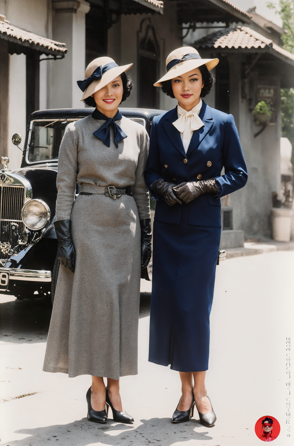 ในโลกสมมติของกรุงเทพฯ ยุคทศวรรษ 1930 ที่ปรากฏผ่านคอลเลกชันภาพ AI ชุดนี้ สตรีสยามแต่งกายแบบตะวันตกที่สวยงาม สะท้อนอิทธิพลจากแฟชั่นอังกฤษในช่วงระหว่างสงครามโลก (Inter War) โดยเฉพาะอย่างยิ่งชุดสูทกลางวัน (Women’s Day Suit) ที่เป็นสัญลักษณ์แห่งความสง่างามและความทันสมัยของหญิงชั้นสูง ภาพเหล่านี้ได้รับแรงบันดาลใจจากฉลองพระองค์ของสมเด็จพระนางเจ้ารำไพพรรณี พระบรมราชินีในพระบาทสมเด็จพระปกเกล้าเจ้าอยู่หัว ซึ่งขณะทรงพำนักอยู่ในประเทศอังกฤษภายหลังการเปลี่ยนแปลงการปกครองปี พ.ศ. 2475 ภาพในคอลเล็คชั่นนี้สะท้อนให้เห็นถึงการเปลี่ยนผ่านของแฟชั่น จากตะวันตกสู่สยามในยุคนั้นได้อย่างงดงาม