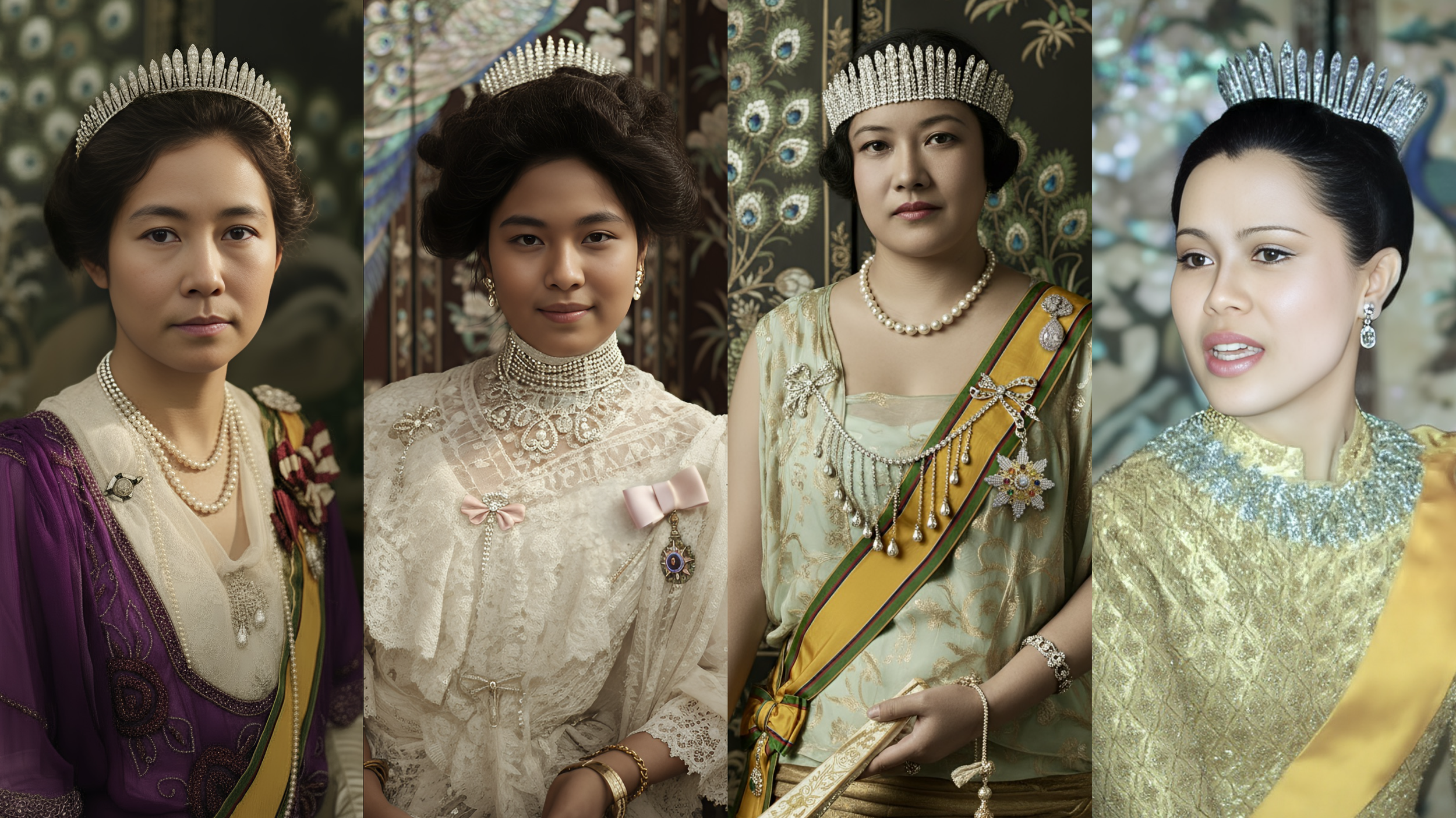 It is believed that the Fringe Tiara was introduced to the Siamese court during the reign of King Chulalongkorn (Rama V), a monarch celebrated for his diplomatic acumen and his appreciation of European art and craftsmanship. During his two grand tours of Europe, the King acquired several suites of diamonds and precious jewels. On his second journey he is thought to have purchased this particular tiara, later bestowing similar ornaments upon his consorts — the Queen, Royal Consorts, and Chao Choms Sadab — upon returning to Siam. The largest and most magnificent of these tiaras was presented to Queen Sri Bajarindra, the Queen Mother, marking one of the earliest Western diamond parures to play a prominent role in the Siamese court.